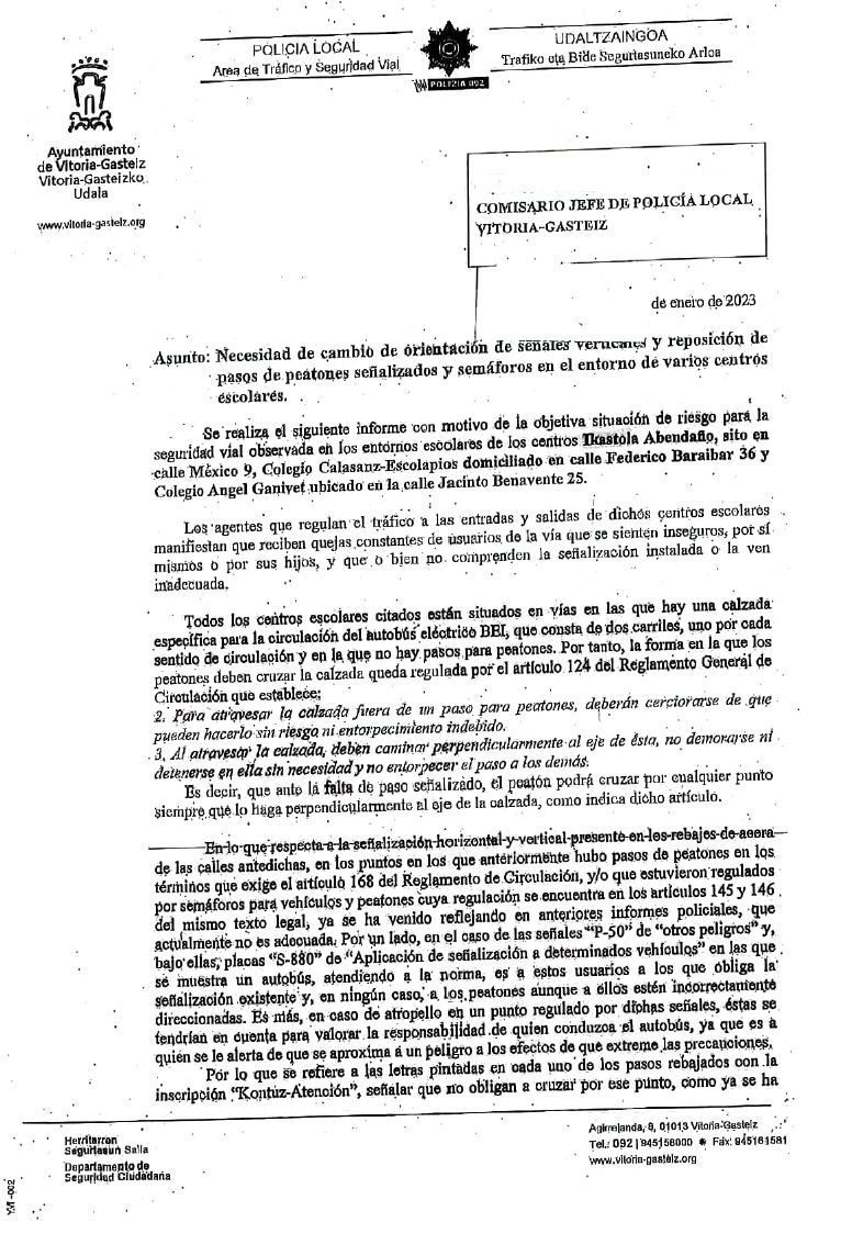 Gasteizko Udaltzaingoak txosten batean jaso du ikastolako sarrera nagusiaren aurrean dagoen Tomas Zumarraga Dohatsuaren oinezkoen bidegurutzearen arriskugarritasuna. Txostenean nabarmentzen denez, “istripu eta harrapaketen arrisku handiko puntua da bidegurutze oso konplexua baita” eta “oso bihurgune itxia da eta ikuspena oso txikia da, bai oinezkoentzat baita galtzada horretatik zirkulatzen duten gidarientzat“.